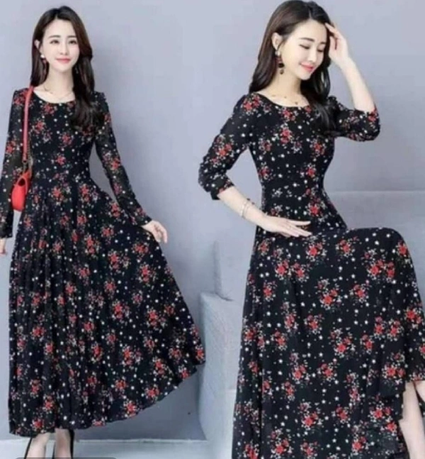 RBT- 025 BLACK FLWR PRNTD LNG DRS Size: S M L XL Fabric: Crepe Within 7-11 business days However, to find out an actual date of delivery, please enter your pin code. RBT- 025 BLACK FLWR PRNTD LNG DRS