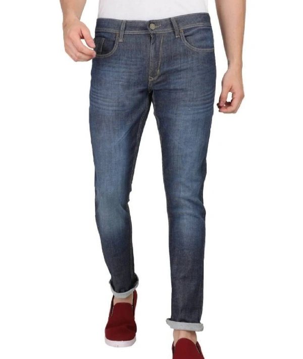 Men's Faded Slim Fit Blue Denim Mid-Rise Jeans