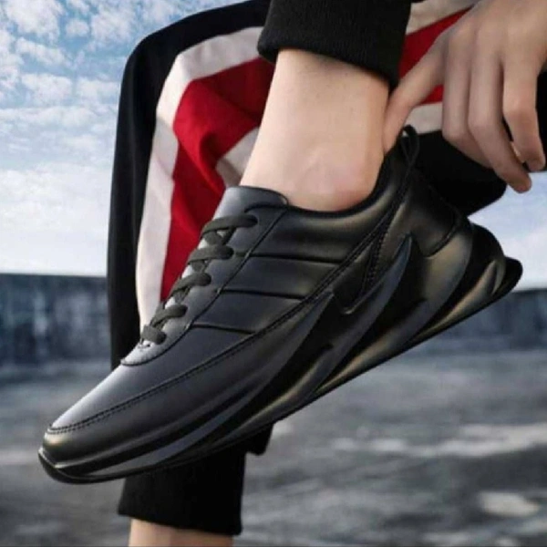 Men's Stylish and Trendy Black Solid Synthetic Sports Shoes