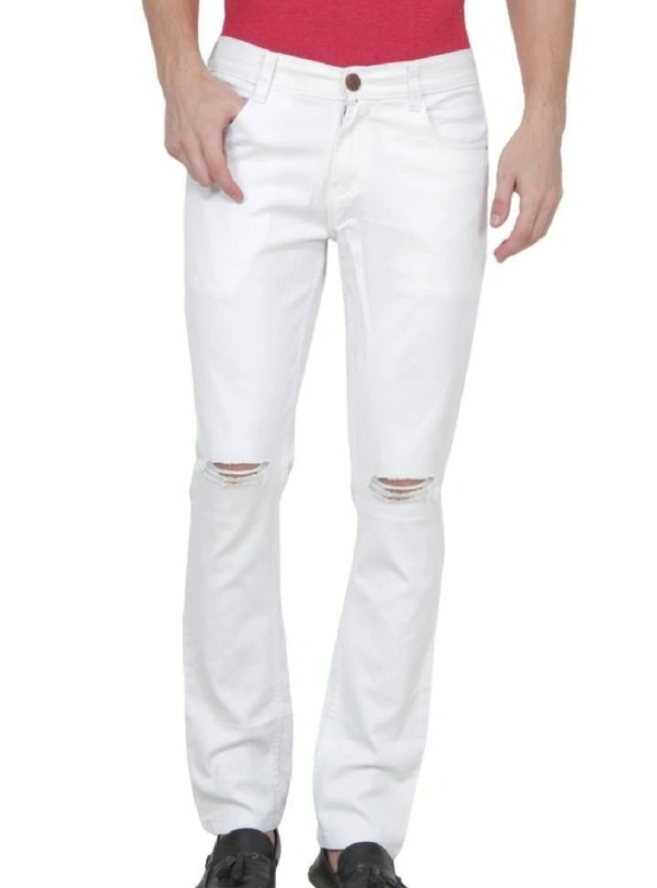 Men's White Denim Distress Regular Fit Jeans
