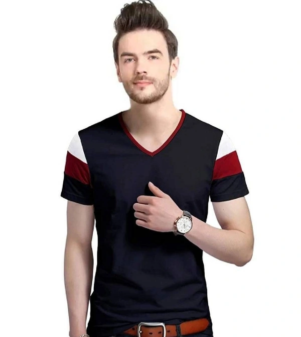 Stylish Black Cotton Colourblocked V-Neck T-Shirt For Men